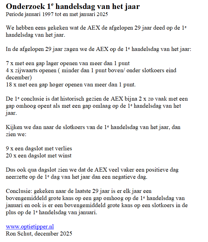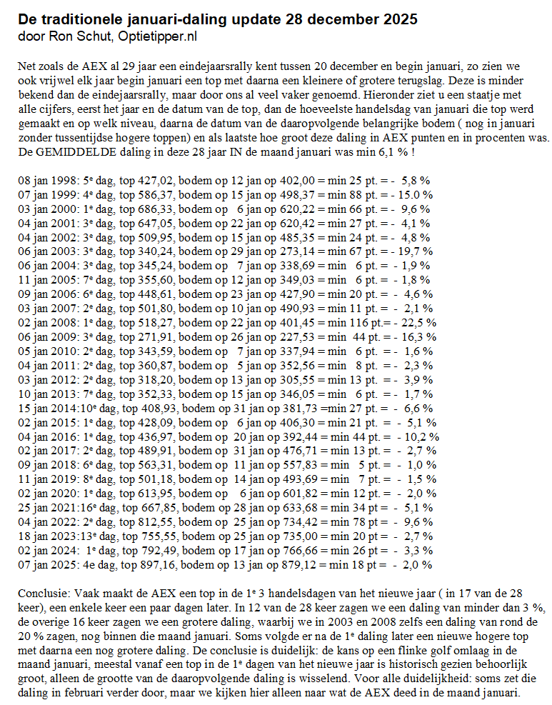 Wij handelen op basis van onze grafieken en verwachtingen en wie ons volgt, doet dat uiteraard voor eigen rekening en risico. Opties kunnen tot grote winsten, maar soms ook tot grote verliezen leiden. Wie zich geen grote verliezen kan veroorloven, dient ook geen grote bedragen in opties te steken.